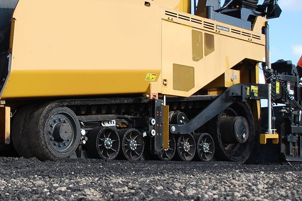 履带整体接纳纯橡胶无铁齿设计,行走更平稳,摊铺更匀称。